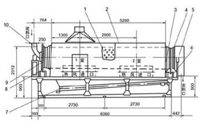 3、根據(jù)產(chǎn)量要求,物料含水率高低,轉(zhuǎn)動干燥室可劃分為若個單元,各單元有相對獨立的加熱裝置、風機及干燥室。對各單元進行合理的布局組合,有利于進一步提高熱效率,縮短干燥時間。